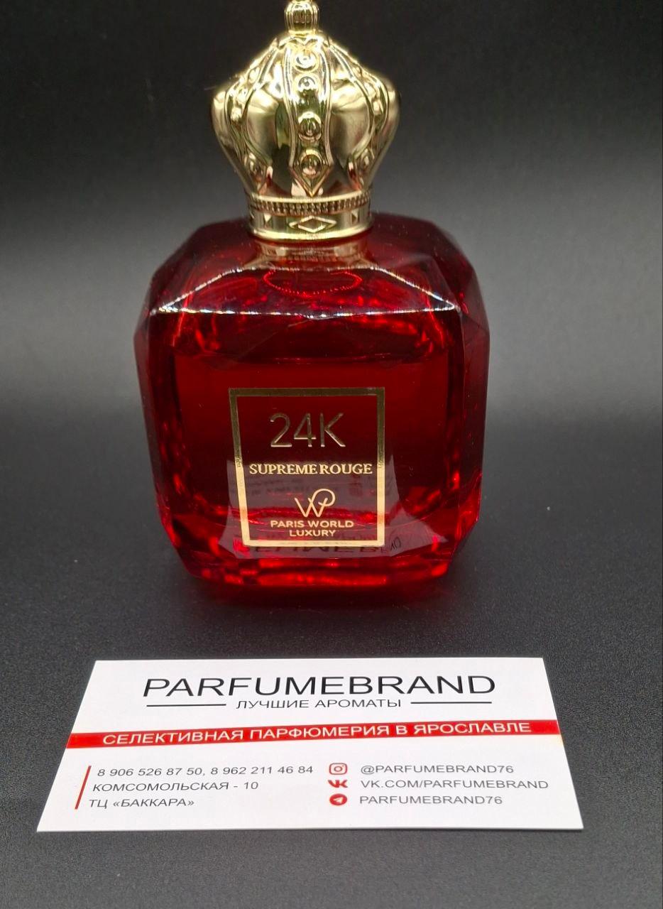 5 мл. - 1 300 р 10 мл. - 2 500 р 100 мл. - 10 500 р 24K Supreme Rouge от Paris World Luxury — это восточный сладкий унисекс-аромат, известный как более мягкая и доступная альтернатива знаменитой «Baccarat Rouge 540 extrait». Парфюм отличается высокой стойкостью (до 3 дней), обволакивающим сладким, пряным шлейфом с нотами цукатов, сахарной ваты, жасмина, мускуса и кедра. Основные ноты: Верхние ноты: Амбра, жасмин. Ноты сердца: Пряности, миндаль. Базовые ноты: Сахарная вата, цукаты, мускус, кедр. Звучание: Сладкое, пряное, сливочно-хвойное. Шлейф: Нежный, сладкий, обволакивающий. Этот аромат — выбор тех, кто любит гурманские, насыщенные композиции, сочетающие восточную роскошь и карамельную сладость.
